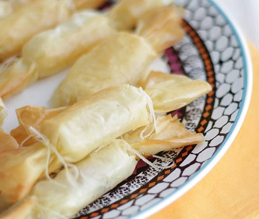 - Appliquez du beurre fondu sur une feuille de filo et placez-en une autre par dessus.